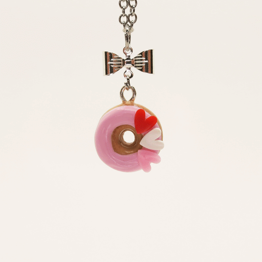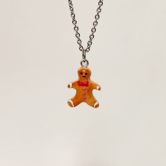 Collier - Biscuit Bonhomme pain d'épice avec noeud papillon rose