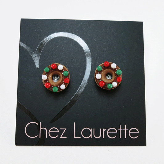 Beigne - chocolat et mini billes vertes / rouges / blanches
