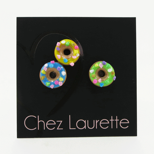 Donuts asymétrique - Vert / confettis multicolores et duo Bleu & Jaune / confettis multicolores